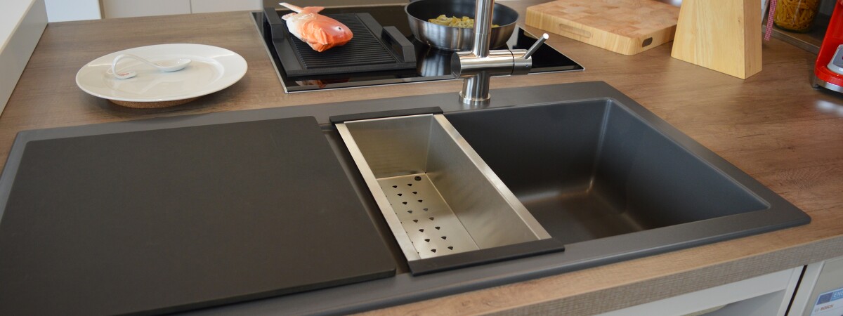 Armatur und Müllsystem. Die Elektrogeräte können für den Preis von 3.200 € zusätzlich erworben werden.