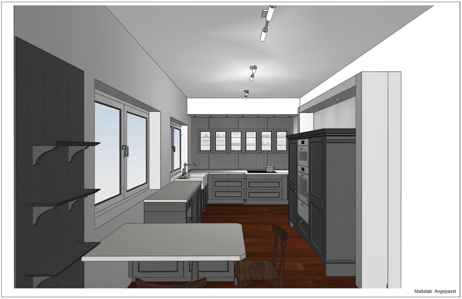 Zum Verkauf steht eine modern geplante Landhausküche in perlgrau.