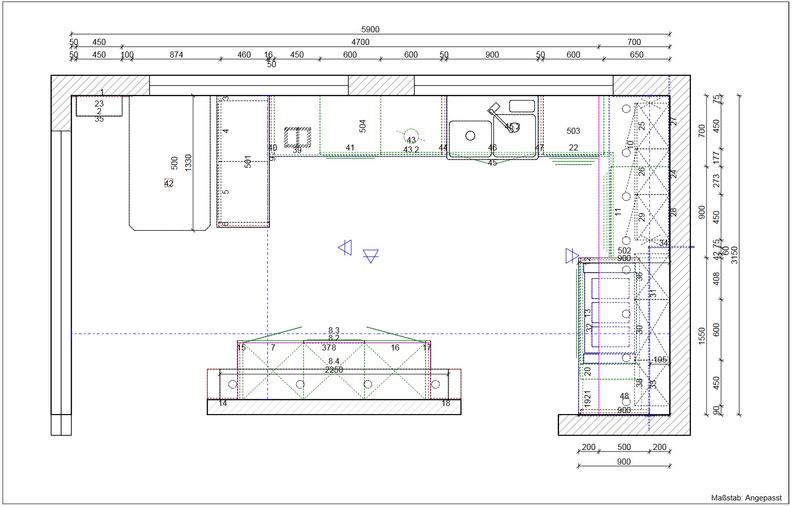 Die Front ist ein lackiertes Echtholzfurnier. Durch ihre besondere aber angenehme Farbgebung wird sie der Hingucker in Ihrem Zuhause und läd mit ihrer gemütlichen Sitzecke zu schönen Kochabenden ein.