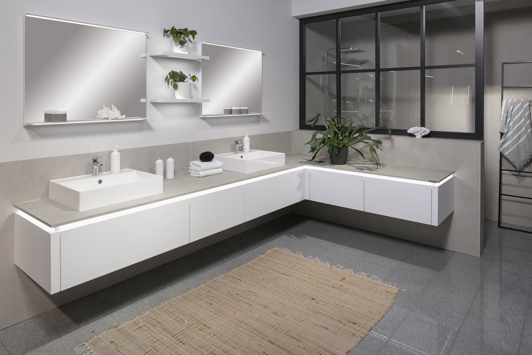 Dazu passt, dass Küchenhersteller das Bad zunehmend als Teil eines sortimentsübergreifenden Wohnprogramms einplanen. Die daraus entstandenen Möbeltypen ermöglichen zusammenhängende Inneneinrichtungslösungen, bei denen alles gut zusammenpasst.