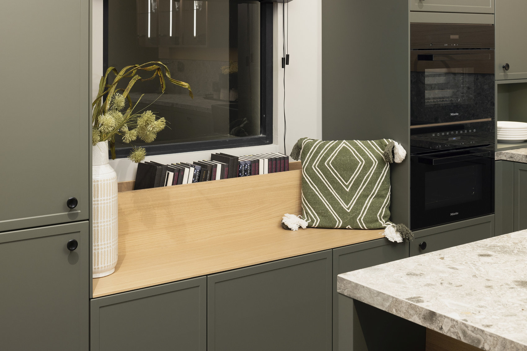 Solche gemütlichen Sitzgruben werden im Nu zu einem Ort des Austauschs: Während abgespült wird, machen die Kinder daneben ihre Hausaufgaben. Gäste finden hier Platz und unterhalten sich, solange die Aperitifs gemixt werden. Sitznischen sind paradigmatisch für den anhaltenden Küchentrend zu einer offenen, lebendigen und geselligen Küche, in der Funktionalität und Komfort Hand in Hand gehen.